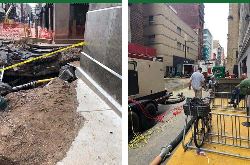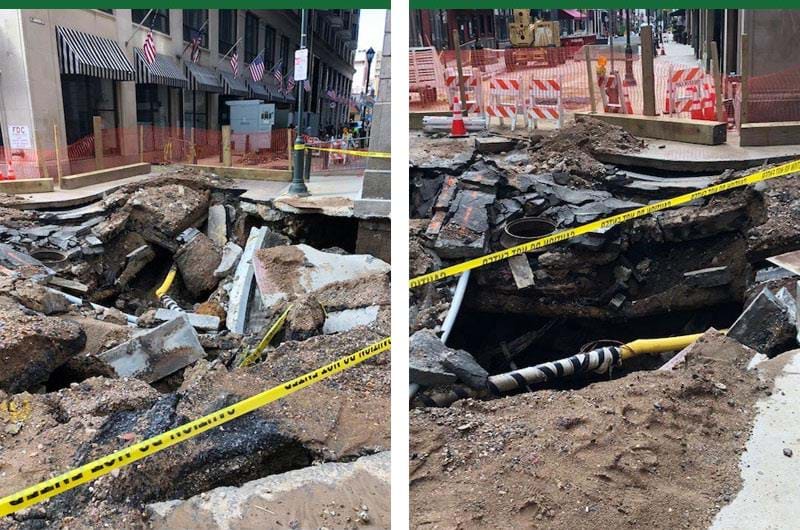 On July 3, 2018, in the predawn hours, a 48-inch water main broke at the intersection of Sansom and Juniper Streets, releasing more than 15 million gallons of water and bringing a torrent of flooding to a neighborhood densely populated with office buildings, eateries and housing. The damage was immediate and catastrophic as the street turned into a sinkhole and power was cut to the surrounding area.